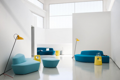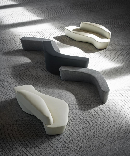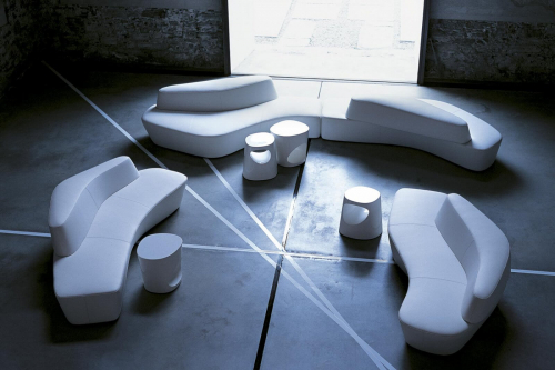 Polar - это система сидений, вдохновленная айсбергами северных морей. Все его компоненты имеют твердые объемы и наклонные линии, которые можно комбинировать для создания диванов и кресел со спинками или без них.