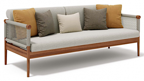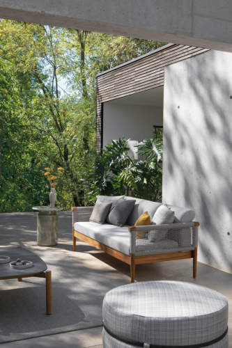Строгий и минималистичный дизайн коллекции Lodge, описанный в структуре, полностью выполненной из тика, оплетенной круглым канатом, который создает мягкое и прочное плетение. Гостеприимное гнездышко, которое становится местом для разговоров и чтения.