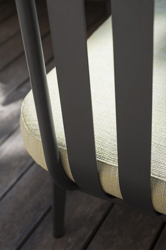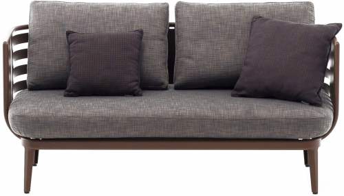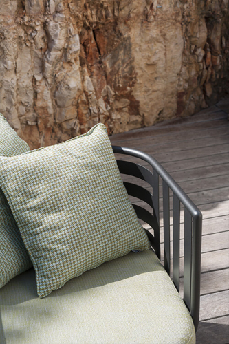 Алюминиевая конструкция дивана может иметь типичную дымчатую или ржавую окраску, а удобные подушки доступны с водоотводящими набивными материалами.