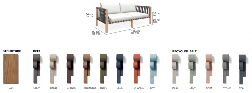 Коллекцию Mistral можно охарактеризовать как ответвление коллекции Network, поскольку она сочетает в себе то же дизайнерское вдохновение. Но здесь интерпретация несколько легче и сосредотачивается на более ограниченных размерах, а также идеально подходит для садов, балконов и террас. Структура из массива тика доступна с ремнями различных цветов.