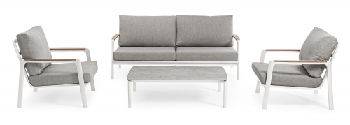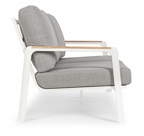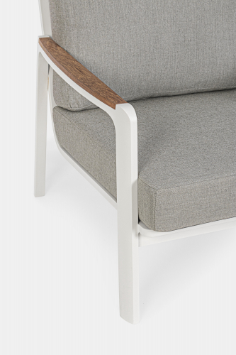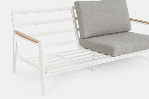 Двухместный диван Jalisco в сочетании с креслами коллекции станет идеальным выбором для обстановки лаунж зоны открытого пространства. Каркас выполнен из алюминия с порошковым покрытием (полиэстер), подлокотники - со вставками из тика. Съемные чехлы подушек выполнены из акрила.