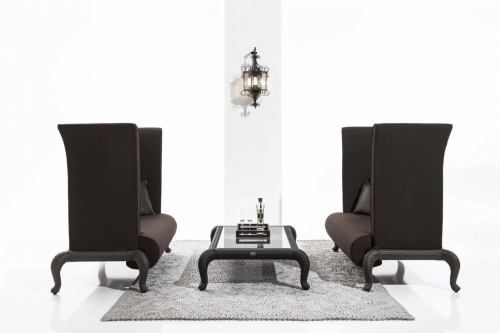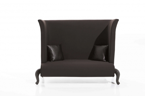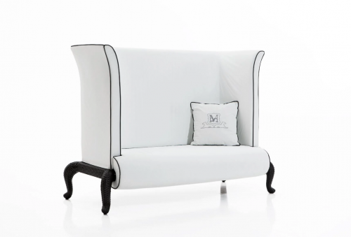 Мебель из ассортимента серии Canopo проистекает из сказочного вдохновения: мебель с сильным драматическим эффектом сочетает в себе впечатляющую эстетику с удобством и простотой использования. "Кошачья ножка" является наиболее характерной частью дизайна каждого предмета мебели этой серии. Элемент, явно классический по стилю, но в то же время имеющий некоторые отчетливо кошачьи черты. Эта культовая деталь сочетается с большими подушками, образующими мягкие формы, охватывающие почти всю конструкцию.