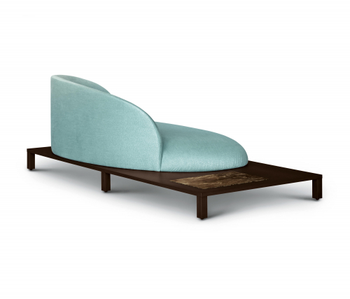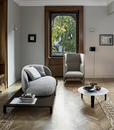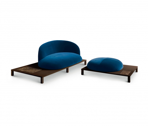 Коллекция Bonsai вдохновлена размышлениями о японской эстетике и культуре. Сиденья отличаются мягкими изогнутыми формами. Эти привлекательные, дружелюбные формы напоминают кусты и кустарники, растущие в садах по всей Японии, которые были выращены и подстрижены, чтобы создать красивые мягкие, "органические", похожие на облака формы. Прямолинейные деревянные платформы, опирающиеся на низкие деревянные ножки, возвышают эти округлые, обитые тканью формы над плоскостью пола.