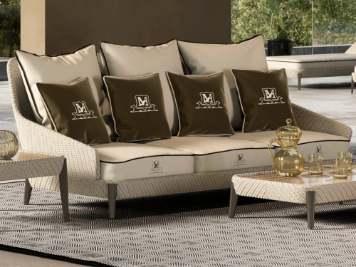 Каждый элемент разработан и создан для защиты от атмосферных воздействий. Прочность, универсальность и легкость: вот характеристики, которые делают эту коллекцию идеальной для открытых пространств в самых разнообразных современных жилых помещениях. Мебель из синтетического волокна VIRO® ручной работы, разработанная для длительного использования на открытом воздухе и, следовательно, устойчивая к любым атмосферным воздействиям. Обладает устойчивостью к перепадам температур (от -70°C до +80°C), ультрафиолетовым лучам, не теряет цвет, влагостойкостью, устойчивость к соли и хлору, плесени. Это нетоксичный экологичный материал (на 100% перерабатываемый), по ощущению как натуральный материал. Корпус мебели реализуют из крашеного алюминия, покрытого плетением из специального синтетического волокна того же цвета. Чехлы подушек выполнены из уличных тканей - дышащих, водоотталкивающих, устойчивых к плесени, они не обесцвечиваются и устойчивы к УФ-лучам. Кроме того, их можно стирать в стиральной машине при 30 °C, и они просты в уходе. Чехлы подушек могут быть выполнены из тканей категорий C, D, E, F, G, S, а также из собственной ткани клиента. Посмотреть палитру материалов Samuele Mazza.