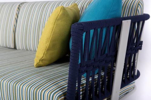 Элегантный мягкий диван Viareggio с модным штрихом в виде плетения призван дарить спокойную атмосферу тосканских пляжей. Простые, но функциональные формы вместе с плетением придают неповторимый стиль зоне отдыха в саду, на террасе, летней площадке. Плетение канатов с их задуманной глубиной и структурой напоминает морские канаты больших яхт и является основным элементом и ориентиром коллекции. Массивные мягкие подушки обеспечивают превосходный комфорт, сохраняя при этом чистый, современный дизайн, гарантируют удобство во время отдыха и эстетическую ценность для окружающего пространства.