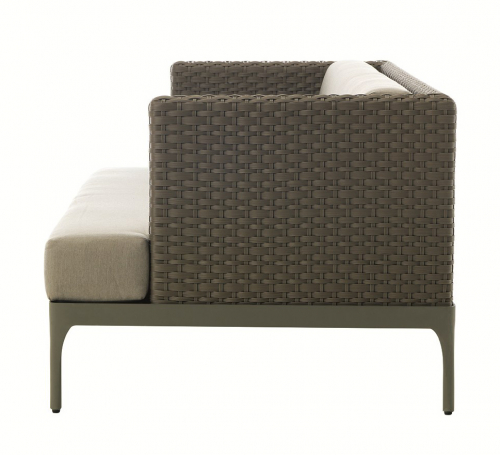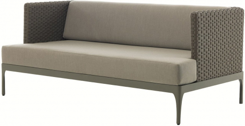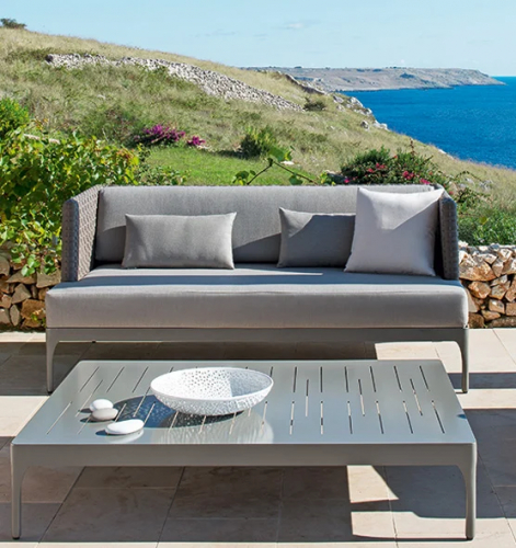 Используемые материалы - это алюминий и волокно LightWick, разработанное компанией Ethimo, с выдающимся неравномерным переплетением для динамического растягивающего эффекта. Волокно Lightwick добавляет дополнительный штрих естественного комфорта.
