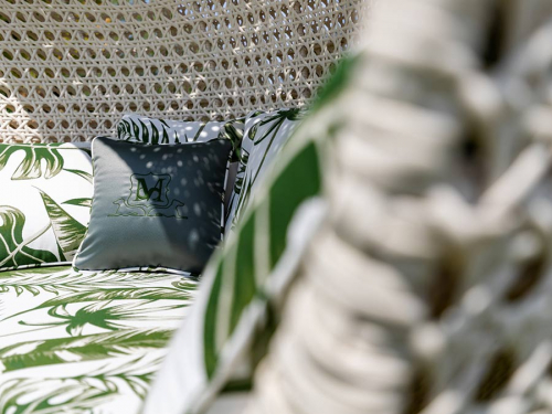 Мебель из синтетического волокна VIRO® ручной работы, разработанная для длительного использования на открытом воздухе и, следовательно, устойчивая к любым атмосферным воздействиям. Обладает устойчивостью к перепадам температур (от -70°C до +80°C), ультрафиолетовым лучам, не теряет цвет, влагостойкостью, устойчивость к соли и хлору, плесени. Это нетоксичный экологичный материал (на 100% перерабатываемый), по ощущению как натуральный материал. Корпус мебели реализуют из крашеного алюминия, покрытого плетением из специального синтетического волокна того же цвета. Чехлы подушек выполнены из уличных тканей - дышащих, водоотталкивающих, устойчивых к плесени, они не обесцвечиваются и устойчивы к УФ-лучам. Кроме того, их можно стирать в стиральной машине при 30 °C, и они просты в уходе.