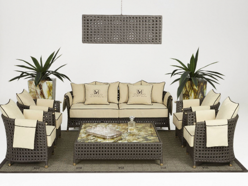 Мебель из синтетического волокна VIRO® ручной работы, разработанная для длительного использования на открытом воздухе и, следовательно, устойчивая к любым атмосферным воздействиям. Обладает устойчивостью к перепадам температур (от -70°C до +80°C), ультрафиолетовым лучам, не теряет цвет, влагостойкостью, устойчивость к соли и хлору, плесени. Это нетоксичный экологичный материал (на 100% перерабатываемый), по ощущению как натуральный материал.
