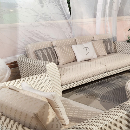 Каждое творение отличается щедрыми подушками и извилистыми формами, которые гармонично и легко вписываются в окружающую среду. Чехлы подушек могут быть выполнены из тканей категорий C, D, E, F, G, S, а также из собственной ткани клиента. Посмотреть палитру материалов Dolcefarniente.