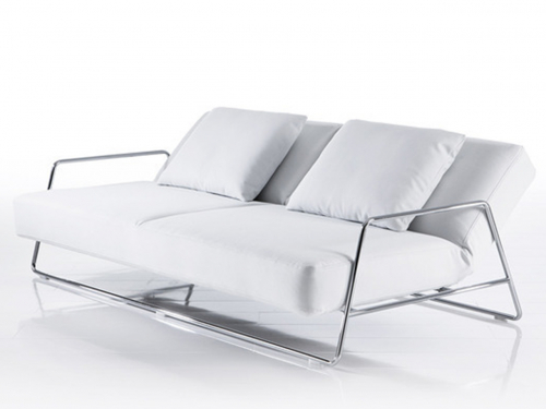 Конструкция: металлическая рама, с блестящей хромированной отделкой, металлическая рама сиденья с подпружиненными деревянными рейками в качестве основания для удобства сидения и сна, деревянная конструкция спинки, мягкая сэндвич-набивка полиуретановой пеной, волокнистое покрытие.