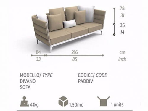 Диван трехместный с подушками в стиле лаунж Roberto Serio Pad
