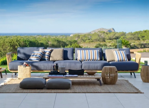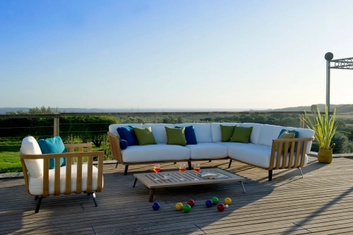 В модульной коллекции Welcome тиковые планки были изогнуты паром с использованием старинной техники ручной работы. Все подушки из коллекции Welcome доступны в более чем 30 различных цветах, что позволяет создать персональную атмосферу на открытом пространстве.