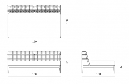 Съемные чехлы подушек выполнены из тканей Unopiu Color Collection, окрашенных с использованием новейших технологий производства, предназначенных для использования на открытом воздухе. Они долговечны, устойчивы к пятнам, плесени, дышат и особенно устойчивы к ультрафиолетовым лучам. Все они обладают такой же мягкостью на ощупь, как и натуральные волокна.
