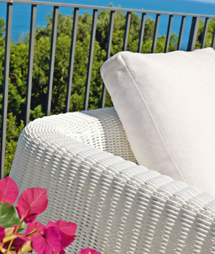 Съемные чехлы подушек выполнены из тканей Unopiu Color Collection, окрашенных с использованием новейших технологий производства, предназначенных для использования на открытом воздухе. Они долговечны, устойчивы к пятнам, плесени, дышат и особенно устойчивы к ультрафиолетовым лучам. Все они обладают такой же мягкостью на ощупь, как и натуральные волокна.