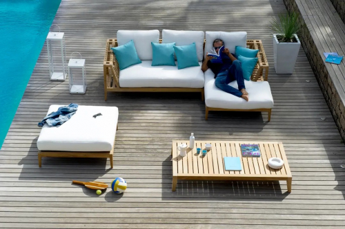 Благодаря безошибочному дизайну, сочетающему тик и WaProLace®, Synthesis представляет собой линию очень комфортной мебели. Этот союз создает уникальное изделие с крупной сеткой, создавая элегантную коллекцию безупречного дизайна. Мягкие подушки доступны в более чем 30 различных цветах, что позволяет создать уютную атмосферу на открытом пространстве. Во всех элементах коллекции, в креслах, диванах, шезлонгах, в низких столиках, в элегантных и вызывающих впечатление конструкциях шатров, лейтмотивом дизайна опорных ножек является расширение секции вниз, что придает импульс и в то же время полноценный характер.
