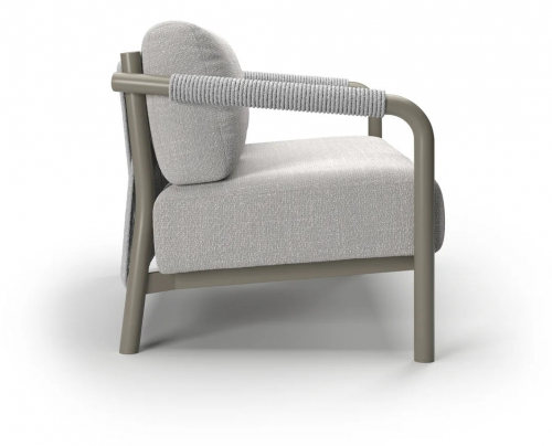 Коллекция включает в себя кресло, двухместный и трехместный диваны, журнальный столик, шезлонг и кушетку, образуя полноценный комплект мебели для отдыха на открытом воздухе, выдержанный в едином стиле. Обеденный гарнитур продолжает эту концепцию благодаря тому же структурированному алюминиевому каркасу, обеспечивая визуальную гармонию всех типов мебели.