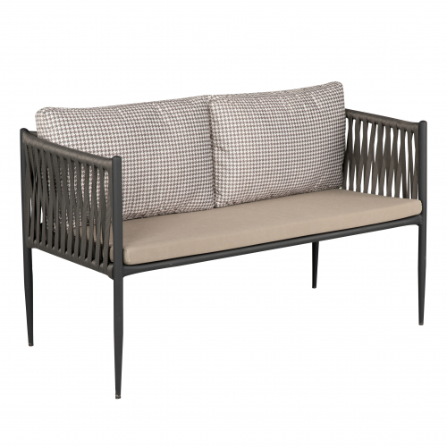Мягкий диван на металлокаркасе Evans с плетением из роупа - это стильное и функциональное решение для коммерческих пространств, создающее гармоничное сочетание эстетики и комфорта. Плетение из плоской веревки, выполненное из прочного и устойчивого к воздействию внешней среды материала, обладает высокой влагостойкостью и легко очищается, что делает диван идеальным для ресторанов и кафе с интенсивным движением. Металлокаркас обеспечивает надежную поддержку и долговечность, а мягкая обивка сиденья и подушек спинки предлагает невероятный комфорт для посетителей. Благодаря своему современному дизайну и удобству, этот диван станет не только приятным элементом интерьера, но и привлекательным местом для отдыха, способствуя созданию уютной атмосферы в любом коммерческом пространстве.