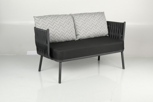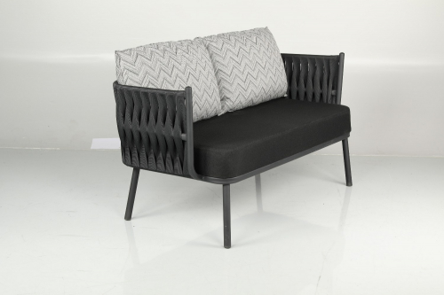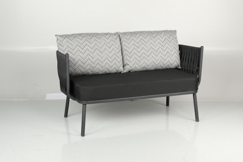 Мягкий диван на металлокаркасе Aura с плетением из роупа - это стильное и функциональное решение для коммерческих пространств, создающее гармоничное сочетание эстетики и комфорта. Плетение из плоской веревки, выполненное из прочного и устойчивого к воздействию внешней среды материала, обладает высокой влагостойкостью и легко очищается, что делает диван идеальным для ресторанов и кафе с интенсивным движением. Металлокаркас обеспечивает надежную поддержку и долговечность, а мягкая обивка сиденья и подушек спинки предлагает невероятный комфорт для посетителей. Благодаря своему современному дизайну и удобству, этот диван станет не только приятным элементом интерьера, но и привлекательным местом для отдыха, способствуя созданию уютной атмосферы в любом коммерческом пространстве.