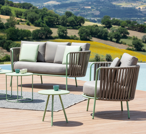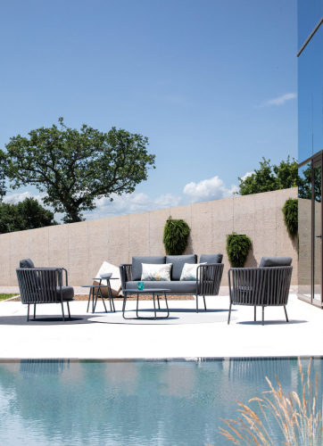 Стройные линии переплетения Daisy Rope идеально сочетаются с устойчивостью стального каркаса. Завершает рецепт идеального отдыха на открытом воздухе мягкая подушка на сиденье и под спину.