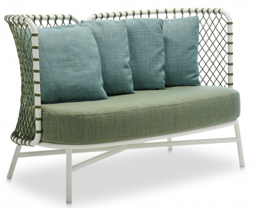 Диван Charme — это воплощение элегантности и комфорта. Уникальная геометрия спинки, сплетенная из плотного и современного каната Flat Trendyrope, создает неповторимый уютный силуэт. Этот диван идеально подходит для отдыха на террасе или в патио, а также станет ярким акцентом в интерьере квартиры или дома.