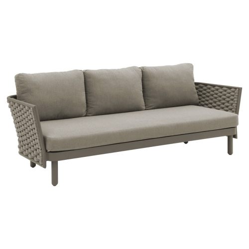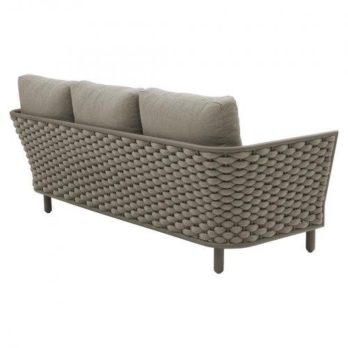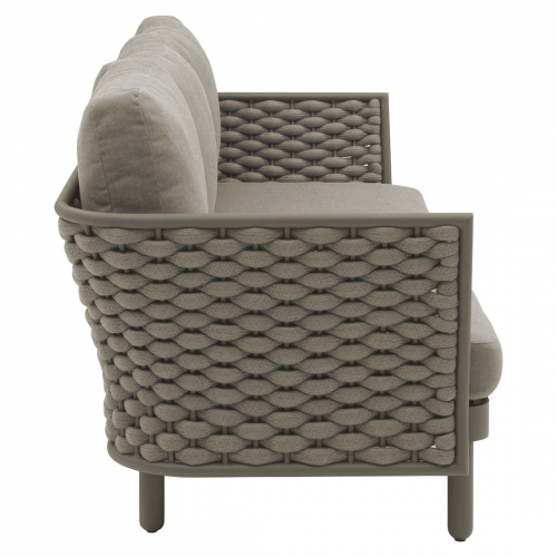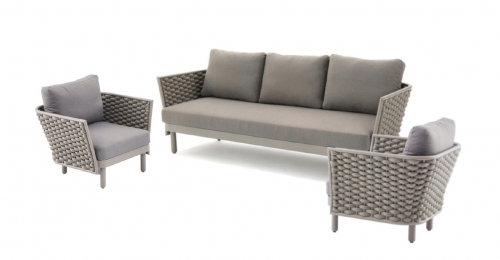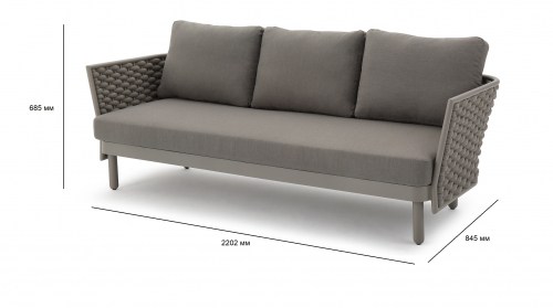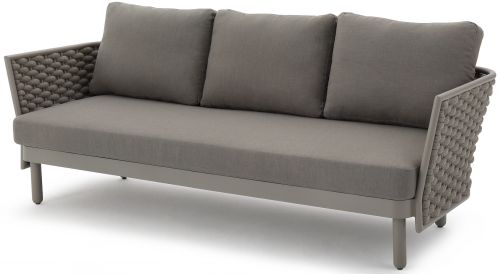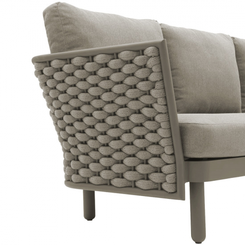 Коллекция Leon нежна и элегантна, сочетает в себе изгибы и прямые линии, обретая вкусовой баланс. Строгие линии алюминиевого каркаса с порошковым покрытием дивана Leon сочетаются с мягким плетением акрилового каната и мягкими подушками, создавая стильную и современную модель в актуальной расцветке. Каркас в приятном оттенке излучает спокойствие и неторопливый темперамент. Благодаря плетению из роупа диван становится намного оригинальнее и прочнее.