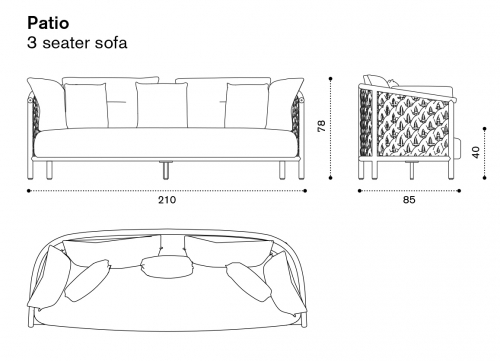 Эта невероятно уютная коллекция, в которой кресла, диваны и гамак напоминают кокон. Увидев любой предмет мебели из Patio сразу возникает желание погрузиться в его "объятия", расслабляясь и согреваясь под солнцем в саду. Все элементы коллекции Patio объединены одной темой: новый взгляд на традиционное ткачество разных культур, с их завораживающими геометрическими узорами и искусным мастерством. На основе их изучения рождаются новые узоры, в то же время структура и декор рождает гостеприимную соблазнительную и изысканную мебель.