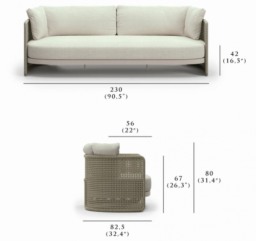 Коллекция Miura для отдыха на открытом воздухе - это приглашение к комфорту и элегантности. Мягкие, объемные сиденья привлекают внимание своей плетеной оболочкой, отличительной чертой, достигнутой за счет использования акриловых шнуров разного диаметра. Это плетение не только придает уникальный внешний вид, но и добавляет привлекательные тактильные ощущения. Miura предлагает широкий ассортимент элементов для уличной среды, гарантируя решения для различных потребностей. От предметов мебели для отдыха, которые приглашают расслабиться и комфортно провести время, до обеденных наборов, которые сочетают стиль и функциональность для дружеских встреч, вплоть до шезлонгов, каждый элемент разработан, чтобы придать характер окружающей среде.
