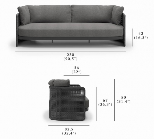 Коллекция Miura для отдыха на открытом воздухе - это приглашение к комфорту и элегантности. Мягкие, объемные сиденья привлекают внимание своей плетеной оболочкой, отличительной чертой, достигнутой за счет использования акриловых шнуров разного диаметра. Это плетение не только придает уникальный внешний вид, но и добавляет привлекательные тактильные ощущения. Miura предлагает широкий ассортимент элементов для уличной среды, гарантируя решения для различных потребностей. От предметов мебели для отдыха, которые приглашают расслабиться и комфортно провести время, до обеденных наборов, которые сочетают стиль и функциональность для дружеских встреч, вплоть до шезлонгов, каждый элемент разработан, чтобы придать характер окружающей среде.