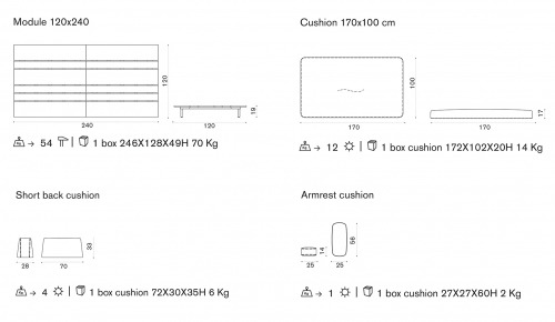 Calipso предлагается в трех разных модулях (1200x1200 мм, 1800x1200 мм и 2400x1200 мм), каждый из которых состоит из основания, изготовленного из планок из натурального тикового дерева разной ширины. Алюминиевая рама особенно незаметна, настолько, что сиденья кажутся «парящими». Мягкие сиденья доступны в трех размерах (1000x1000 мм, 1700x1000 мм и 2000x1000 мм) и «свободны» от основания, на которое они опираются, которое больше, чем сами подушки, чтобы обеспечить максимальную свободу в расположении каждого элемента в зависимости от потребности. Calipso предлагает новый способ наслаждаться жизнью на свежем воздухе с качеством, гибкостью, стилем и комфортом, легко удовлетворяя потребности жилых помещений, а также более сложные требования контрактных и гостиничных условий.