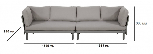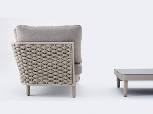 Коллекция Leon нежна и элегантна, сочетает в себе изгибы и прямые линии, обретая вкусовой баланс. Строгие линии алюминиевого каркаса с порошковым покрытием модульного дивана Leon сочетаются с мягким плетением акрилового каната и мягкими подушками, создавая стильную и современную модель в актуальной расцветке. Каркас в приятном оттенке излучает спокойствие и неторопливый темперамент. Благодаря плетению из роупа диван становится намного оригинальнее и прочнее.