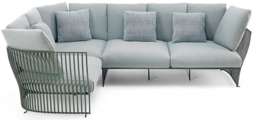 Элегантность городской мебели конца девятнадцатого века вновь оживает в коллекции Venexia, сочетающей вневременной шарм и современную функциональность. Алюминиевая конструкция, визуально напоминающая старинные перила, характеризует диваны и кресла, обволакивая щедрые и округлые формы сиденья ощущением легкости и прочности одновременно. Зона лаунж уютная и удобная, низкие кофейные столики выгодно сочетаются с неожиданным сочетанием камня и алюминия. Теплые оттенки тканей для подушек создают связь с Землей.