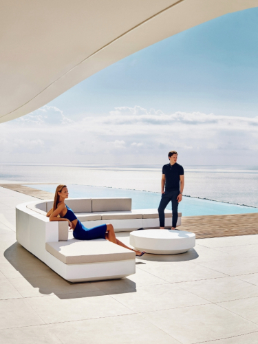 Vela - это обширная коллекция уличной мебели, направленная на то, чтобы предложить комфорт и качество, не теряя при этом оригинальных особенностей. Эта модульная коллекция с элементарной призматической геометрией основывает свою особенность на балансе пропорций. Элементы могут объединяться между собой для интеграции в любое пространство. Их точные объемы создают иллюзию парения в нескольких сантиметрах от пола, а когда они освещаются, то превращаются в плавающие архитектуры.