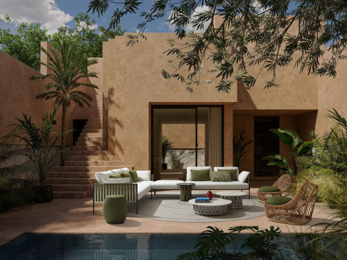 Для защиты от непогоды каждый предмет может комплектоваться специальным чехлом. Благодаря сочетанию долговечности, простоты ухода и экологичности, коллекция является идеальным решением для обустройства масштабных пространств в любом стиле – от официального до непринуждённого.