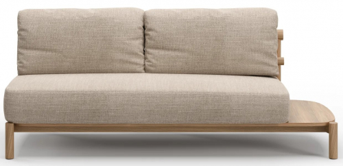 Конструкция, полностью выполненная из тикового дерева, украшена тонкой отделкой, что максимально повышает ее функциональность и эргономичность. Коллекция Lyora представлена креслами, а также двухместными и трехместными диванами компактных размеров и модульными конструкциями с обволакивающими линиями.