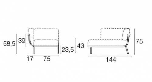 Варианты обивки подушек: ткани категорий Basic, Standard, Exclusive.