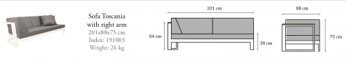 Представьте себе комбинацию бесконечной элегантности в освежающе современном стиле. Представьте себе утонченный дизайн, который сопровождается невероятным комфортом. Представьте себе Toscania. Благодаря уникальной композиции - алюминиевому каркасу с порошковой покраской и большим рельефным пастельным подушкам - эта коллекция соответствует самым современным трендам в оформлении интерьера. Мебель из коллекции Toscania добавит свой стиль и неповторимый шарм уникальным отелям, утонченным ресторанам, выдержанным в современном стиле садам и террасам.