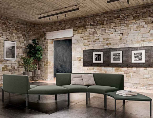 Диван Astro состоит из модулей, которые можно настраивать на свое усмотрение и комбинировать друг с другом с помощью соединительной системы, чтобы обставить специальные помещения, предназначенные для приема гостей, например, залы ожидания, вестибюли отелей, лаунж-зоны на вокзалах, в аэропортах или в рабочих пространствах. Его сила заключается в универсальности и многофункциональности, он будто приглашает поэкспериментировать с предлагаемыми, почти бесконечными возможностями. Astro идеально подходит для создания извилистых и мягких композиций с двухцветными гармоничными сочетаниями пуфов и столиков для размещения вещей.