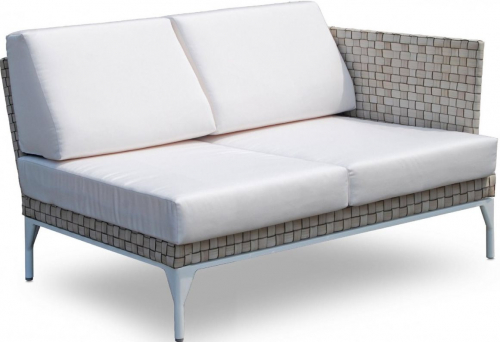 Плетеный правый модуль с подлокотником из искусственного ротанга цвета Seashell и подушками из ткани sunbrella цвета Linen Champagne из коллекции Brafta. Элегантная и строгая, она способна идеально вписаться в любую среду и адаптироваться к любому стилю. Модульная система позволяет создавать бесконечное число всевозможных и композиций и вариантов.