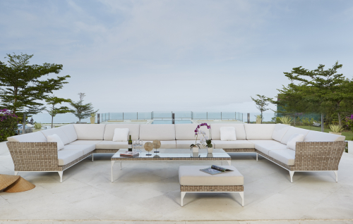 Плетеный левый угловой модуль из искусственного ротанга цвета Seashell и подушками из ткани sunbrella цвета Linen Champagne из коллекции Brafta. Элегантная и строгая, она способна идеально вписаться в любую среду и адаптироваться к любому стилю. Модульная система позволяет создавать бесконечное число всевозможных и композиций и вариантов.