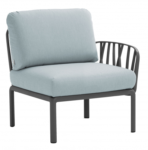Модули Komodo выполнены из стеклопластика, имеют складные спинки и боковины, съемные подушки, благодаря чему можно составить диван любой длины, превратить отдельные модули в столики или пуфы.