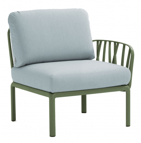 Модули Komodo выполнены из стеклопластика, имеют складные спинки и боковины, съемные подушки, благодаря чему можно составить диван любой длины, превратить отдельные модули в столики или пуфы.