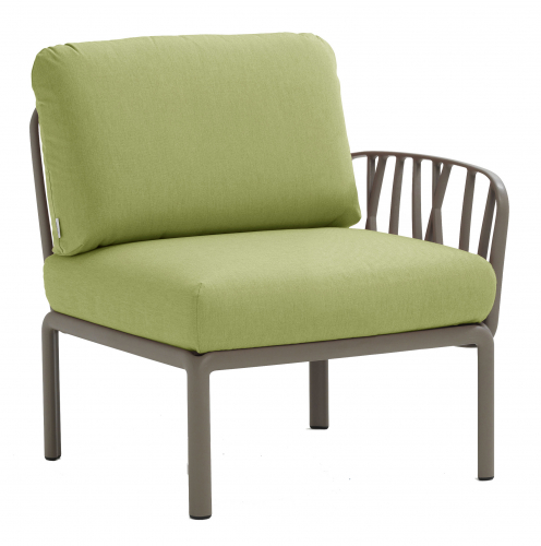 Модули Komodo выполнены из стеклопластика, имеют складные спинки и боковины, съемные подушки, благодаря чему можно составить диван любой длины, превратить отдельные модули в столики или пуфы.