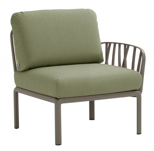 Модули Komodo выполнены из стеклопластика, имеют складные спинки и боковины, съемные подушки, благодаря чему можно составить диван любой длины, превратить отдельные модули в столики или пуфы.