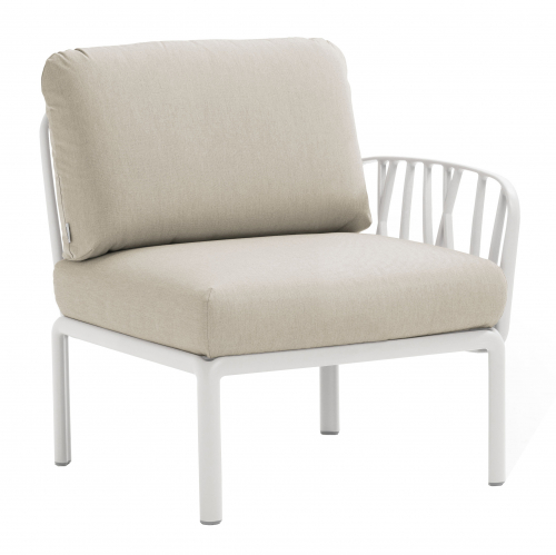 Модули Komodo выполнены из стеклопластика, имеют складные спинки и боковины, съемные подушки, благодаря чему можно составить диван любой длины, превратить отдельные модули в столики или пуфы.