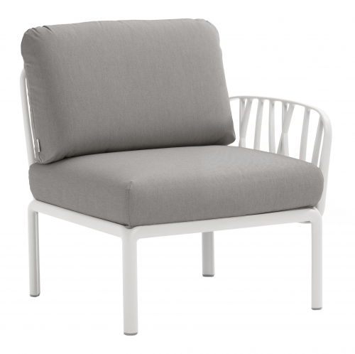Модули Komodo выполнены из стеклопластика, имеют складные спинки и боковины, съемные подушки, благодаря чему можно составить диван любой длины, превратить отдельные модули в столики или пуфы.