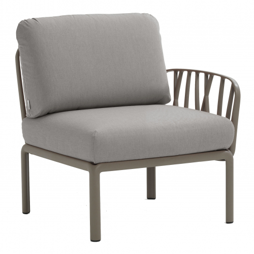 Модули Komodo выполнены из стеклопластика, имеют складные спинки и боковины, съемные подушки, благодаря чему можно составить диван любой длины, превратить отдельные модули в столики или пуфы.