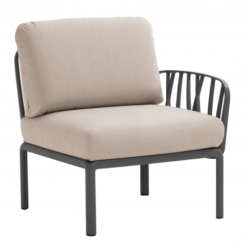 Модули Komodo выполнены из стеклопластика, имеют складные спинки и боковины, съемные подушки, благодаря чему можно составить диван любой длины, превратить отдельные модули в столики или пуфы.