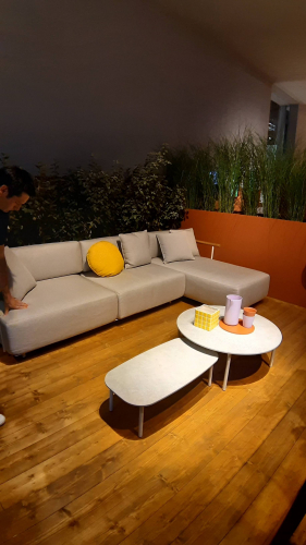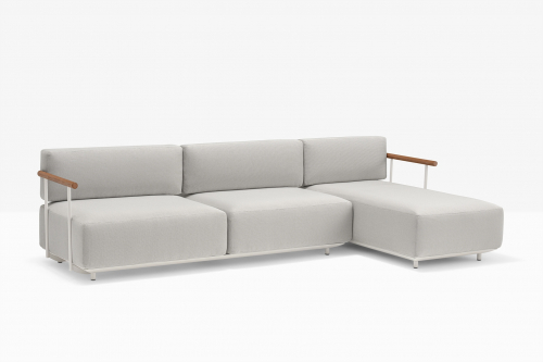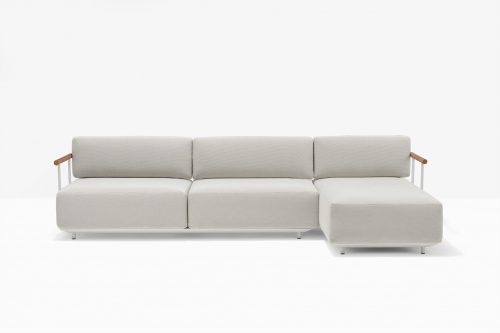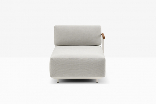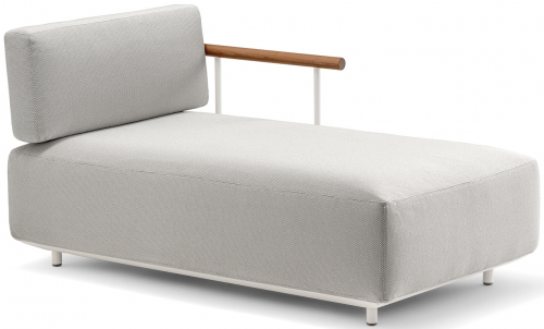 Arki-Sofa – это модульная система для отдыха на открытом воздухе, которая сочетает в себе комфорт и элегантность домашнего дивана. Благодаря наличию различных модулей с Arki-Sofa можно создавать несколько композиций для удовлетворения потребностей пространства и персонализации как жилых, так и контрактных помещений. Модуль с подлокотником с набивкой из пенополиуретана с водонепроницаемой подкладкой, обтянутой тканью для активного отдыха. Его геометрическая форма и достаточно толстые подушки опираются на легкую конструкцию, поддерживаемую эластичными ремнями. Сиденье приподнято над землей с помощью ножек из нержавеющей стали, а спинка и подлокотник из стальных труб отличаются характерными деталями из тикового дерева. Подкладка съемная, поэтому ее можно легко чистить и обслуживать.
