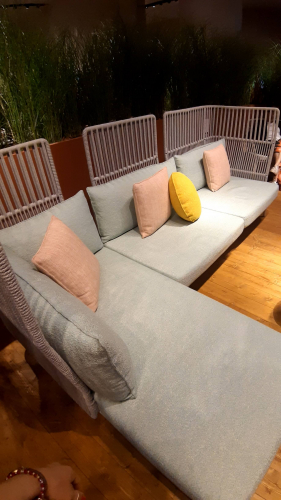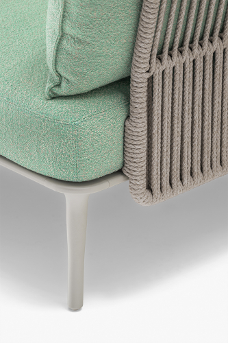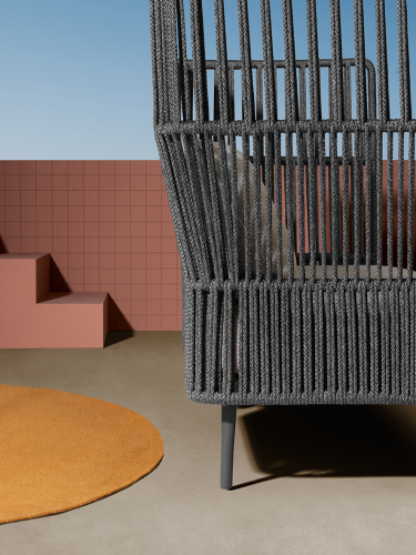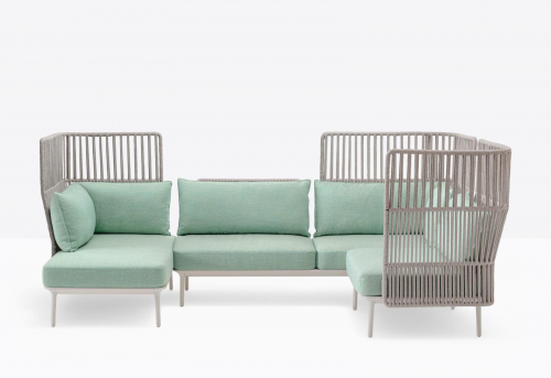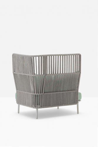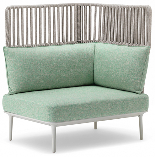 Reva Cocoon - это система сидений для отдыха на открытом воздухе, обеспечивающая максимальную свободу использования, легко адаптируемая и конфигурируемая различными способами для обеспечения максимального комфорта и персонализации. Отличительной особенностью коллекции являются яркие спинки из нержавеющей стали, переплетенные веревкой из устойчивого к атмосферным воздействиям полипропилена, что придает сиденьям по-настоящему естественный вид. Элемент шнура, на 100% изготовленный в Италии опытными мастерами, обеспечивает жизненно важное уединение, сохраняя при этом предмет мебели воздушным и ярким благодаря более толстому плетению в нижней части и более свободному в верхней части. Правый или левый угловой модуль с высокими спинками, образованными двойной кривизной, охватывающей раму по периметру из экструдированного алюминия, на концах которой стоят четыре конические ножки из литого под давлением алюминия. Ощущение обволакивания усиливается благодаря мягким подушкам, лежащим на конструкции: подушки сидений изготовлены из пенополиуретана, а подушки спинки - из полиэстера, обтянуты полностью водонепроницаемой подкладкой и обитые тканью для активного отдыха.