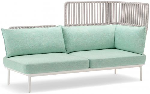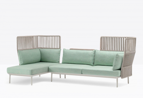 Reva Cocoon - это система сидений для отдыха на открытом воздухе, обеспечивающая максимальную свободу использования, легко адаптируемая и конфигурируемая различными способами для обеспечения максимального комфорта и персонализации. Отличительной особенностью коллекции являются яркие спинки из нержавеющей стали, переплетенные веревкой из устойчивого к атмосферным воздействиям полипропилена, что придает сиденьям по-настоящему естественный вид. Элемент шнура, на 100% изготовленный в Италии опытными мастерами, обеспечивает жизненно важное уединение, сохраняя при этом предмет мебели воздушным и ярким благодаря более толстому плетению в нижней части и более свободному в верхней части. Правый или левый угловой модуль с высокими спинками, образованными двойной кривизной, охватывающей раму по периметру из экструдированного алюминия, на концах которой стоят четыре конические ножки из литого под давлением алюминия. Ощущение обволакивания усиливается благодаря мягким подушкам, лежащим на конструкции: подушки сидений изготовлены из пенополиуретана, а подушки спинки - из полиэстера, обтянуты полностью водонепроницаемой подкладкой и обитые тканью для активного отдыха.